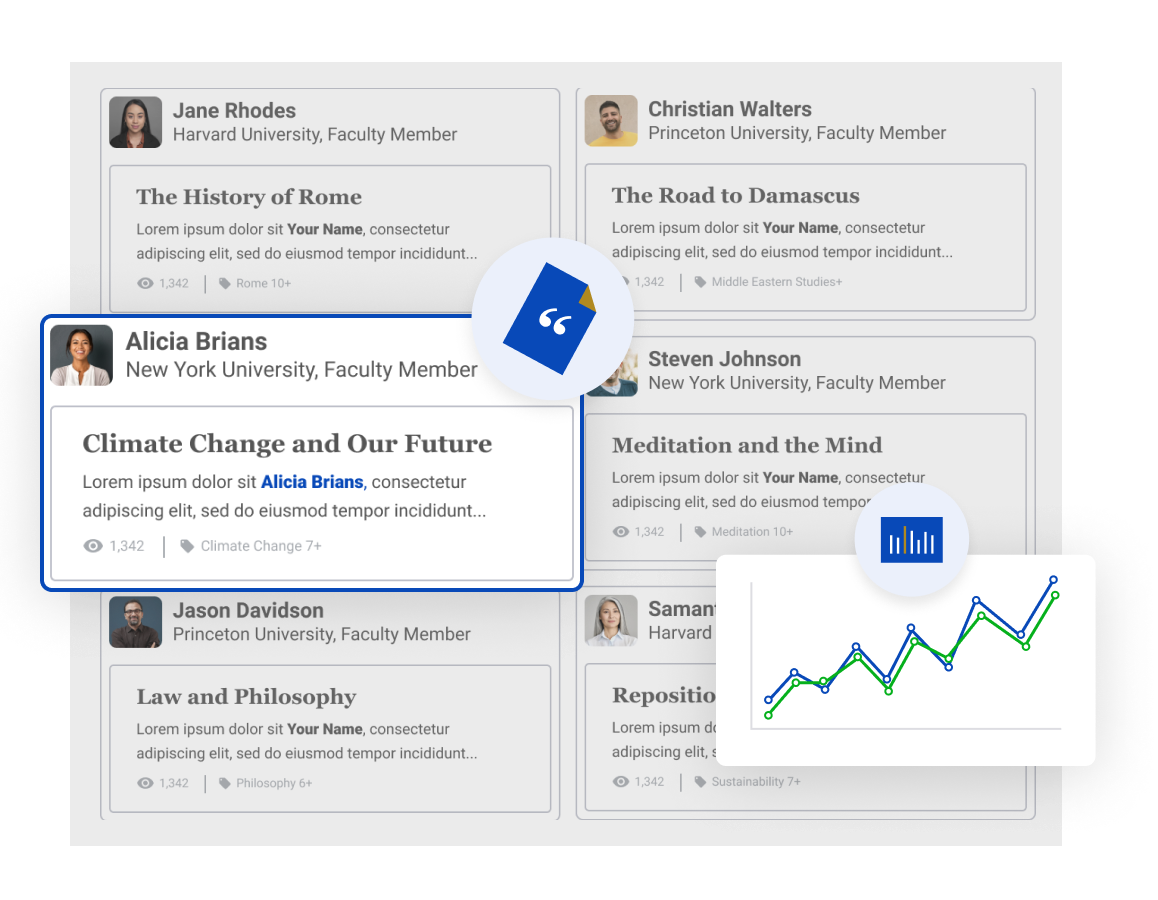 Share your work with other academics, grow your audience and track your impact on your field with our robust analytics